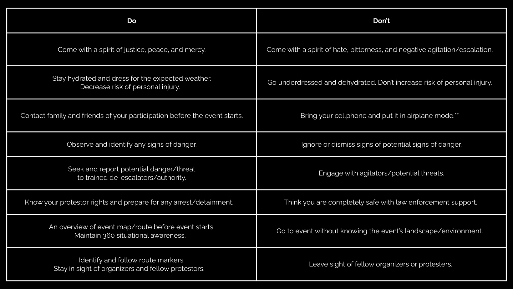 Public Witnessing: March/Protest Etiquette - Dos and Don’ts Safety Guidelines